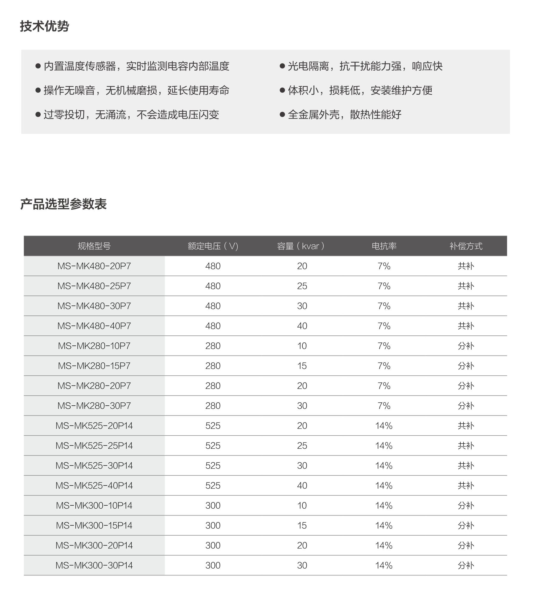 MS-MK 系列智能濾波補償模塊( 集合式濾波無功補償裝置)是針對0.4kV 低壓配電系統(tǒng),由自愈式并聯(lián)電容器、智能測控單元、晶閘管/ 復(fù)合開關(guān)、高性能電抗器以及線路保護單元等部件,經(jīng)過合理的結(jié)構(gòu)設(shè)計集成于一體,安裝方便,維護簡便,用以取代傳統(tǒng)的無功補償方式和裝置,實現(xiàn)了現(xiàn)代電網(wǎng)對無功補償在高效節(jié)能、降低線損、提高功率因數(shù)和改善電能質(zhì)量上的更高要求。