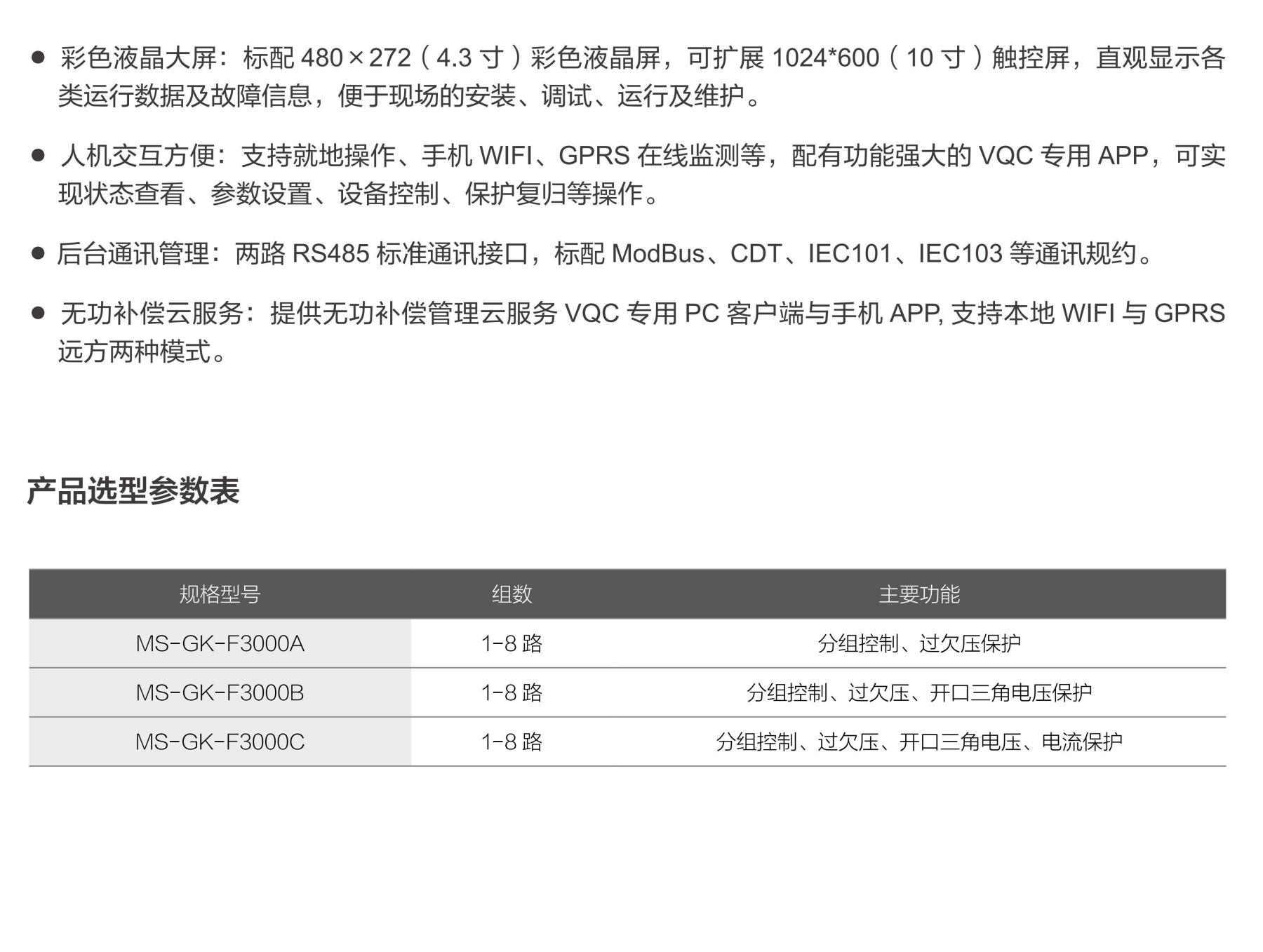 MS-GK 系列高壓無功補償控制器,采用控制與保護一體化設計,主要適用于 6 ~ 35KV 變 電 站,可滿足 1 ~ 2 臺主變、1 ~ 5 組電容器(或電抗器)的自動控制與保護需求,支持滿足負荷側(或發(fā)電側)對于感性(或容性)負載現(xiàn)場的無功補償需求。三種投切方式、五種投切判據(jù),支持分期付款管理、USB 在線升級、無功補償云管理。保護功能包括:過壓、欠壓、開口三角電壓、延時速斷、過流、不平衡電流、諧波等保護功能。